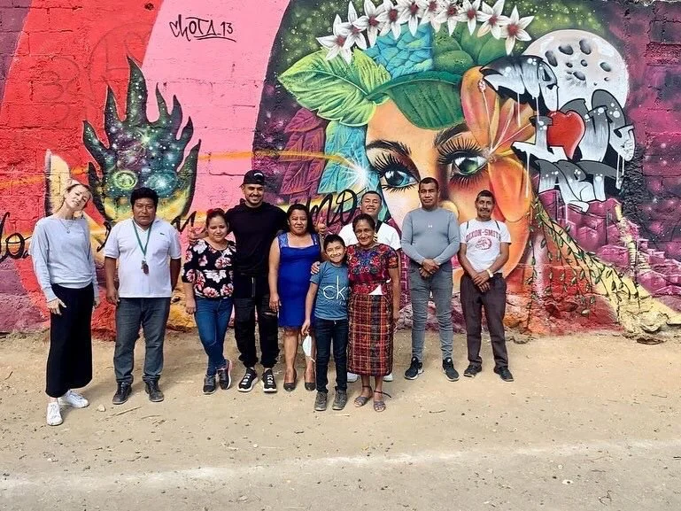 Durante esta visita Chota pintó el primer mural en la aldea Vista Hermosa en Jocotenango Sacatepéquez con el acompañamiento de jóvenes campeones del programa Lead-Up
